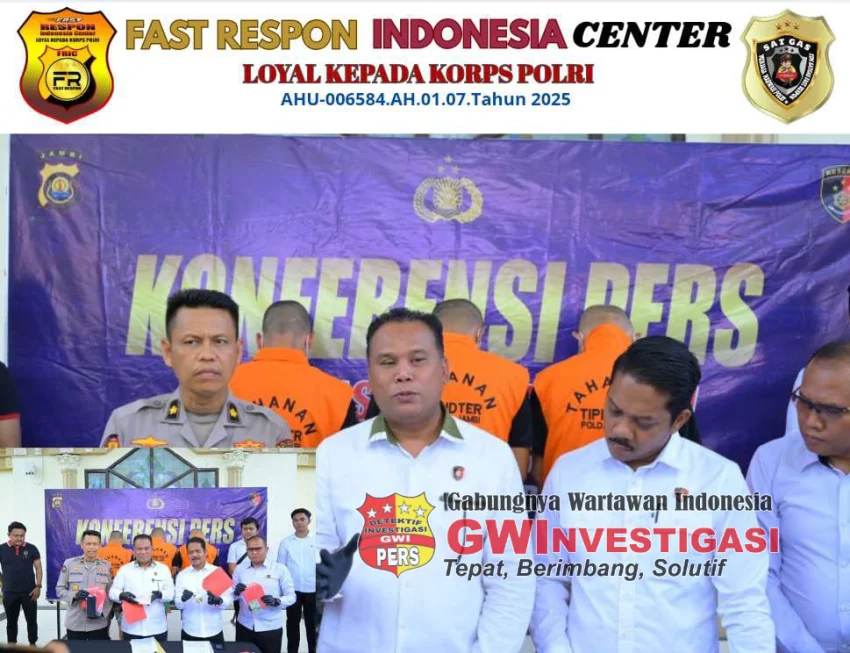 Pengungkapan dilakukan dalam konferensi pers di Mapolda Jambi, Senin (22/09), yang dipimpin langsung oleh Dirreskrimsus Polda Jambi Kombes Pol Taufik Nurmandia SIK MH, didampingi Kasubdit Tipidter dan tim.