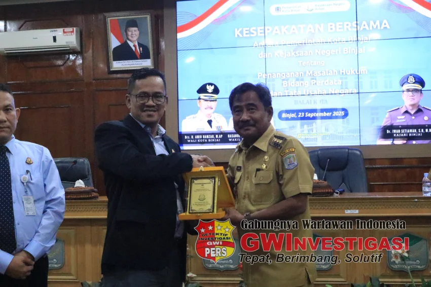 Binjai – InvestigasiGWI com | Pemerintah Kota (Pemko) Binjai akhirnya menandatangani perjanjian kerja sama (MoU) dengan Kejaksaan Negeri (Kejari) Binjai, Selasa (23/9/2025), untuk menangani persoalan hukum di bidang perdata dan tata usaha negara (TUN). Langkah ini dianggap mendesak, mengingat potensi kerugian daerah dan sengketa hukum yang kerap mengintai jika pengelolaan aset dan kebijakan pemerintahan tidak mendapat pendampingan hukum yang tepat.
