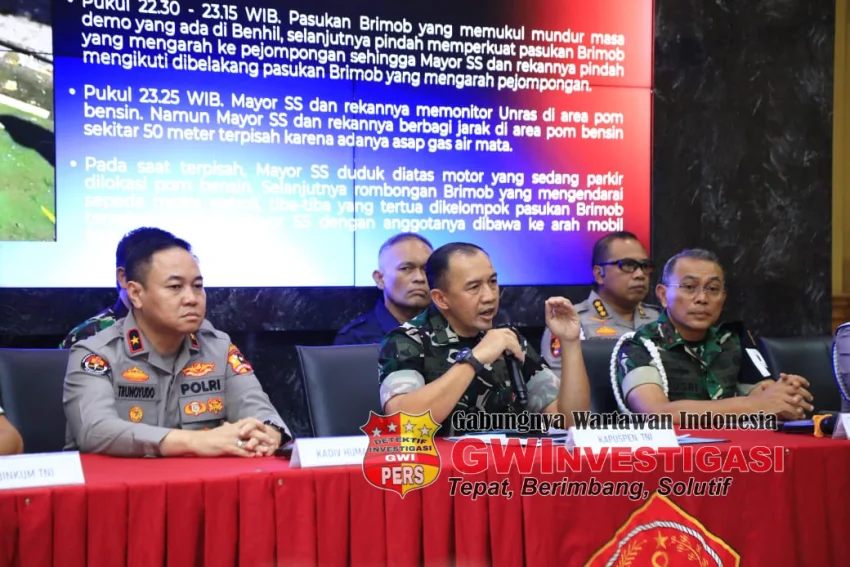Jakarta – InvestigasiGWI.com | Narasi soliditas TNI dan Polri kembali dipertontonkan pasca demonstrasi yang sempat memanas. Dalam konferensi pers di Balai Wartawan Puspen TNI, Mabes TNI, Jumat (5/9/2025), Karo Penmas Divhumas Polri Brigjen. Pol. Trunoyudo Wisnu Andiko, S.I.K. menegaskan bahwa sinergi kedua institusi bukan sekadar simbolik, melainkan diwujudkan lewat patroli gabungan skala besar. Hadir pula Karoprovos Divpropam Polri, Brigjen. Pol. Naek Pamen Simanjuntak.