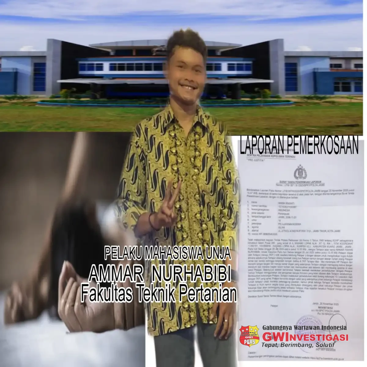 Seorang wanita berinisial IR melaporkan Ammar Fakhri Nurhabibie, mahasiswa Jurusan Teknik Pertanian UNJA, ke Polda Jambi dalam laporan polisi bernomor LP/B/397/XI/2025/POLDA JAMBI. Laporan resmi diterima pada Kamis, 20 November 2025, dan langsung menjadi sorotan tajam karena menyeret nama perguruan tinggi besar di Jambi untuk kedua kalinya dalam kasus yang serupa.