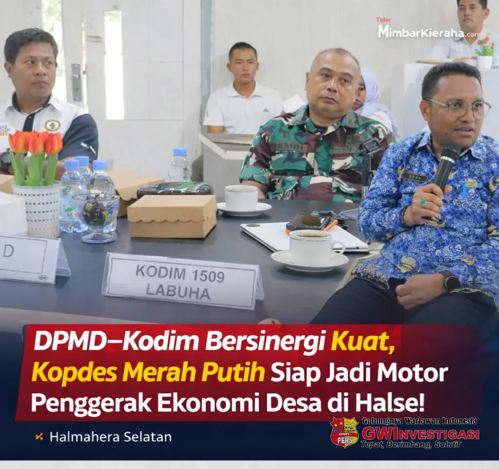 Labuha, InvestigasiGWI.com – Dinas Pemberdayaan Masyarakat dan Desa (DPMD) Kabupaten Halmahera Selatan (Halsel) bersama Komando Distrik Militer (Kodim) 1509-Labuha menggelar rapat koordinasi (rakor) strategis dalam rangka percepatan pembangunan dan penguatan Koperasi Desa (Kopdes) Merah Putih di lima kecamatan, Rabu 08/04